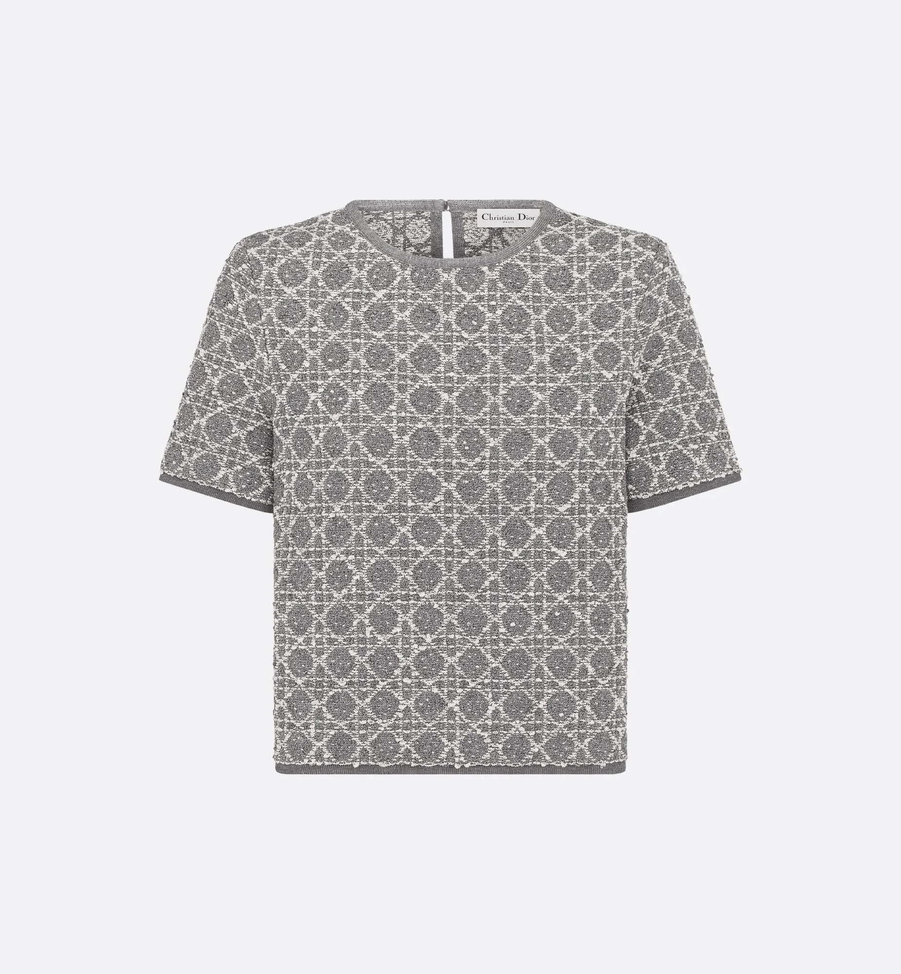 Combining modern style with elegance, the top showcases the Macrocannage motif. Crafted in a gray cotton-blend tweed knit with a textured effect embroidered with silver-tone metallic thread, it features a regular-fit silhouette and short sleeves. The top can be paired with the matching skirt to complete the look. - Rear mother-of-pearl button closure - 65% cotton, 25% acrylic, 8% polyamide, 2% metallic polyester (12 gauge)* - Made in Italy - Treat with extra care and gently dry clean Size & Fit - Cropped regular fit - Short sleeves - The model measures 178 cm / 70 inches and the item shown is in size 36 (FR) - Using our personalized tool will provide you with the best size recommendation - For more information, please review the size guide
