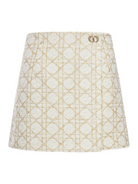 - Macrocannage culottes - Made of lightweight white wool blend tweed with gold metallic thread - Regular fit - Front panel fastened with a gold CD button - Color: White/Beige Made in Italy Composition: Polyamide 65% Polyamide 35% wool 21% Color code: 0891 FANTASIE BLANC 611P45A7898