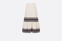 New for the Cruise 2024 collection, the mid-length skirt is adorned with a timeless white and black Dior Marinière motif. Crafted in a cotton and silk textured knit, it offers a flared cut enhanced by a ruffled effect at the bottom. The skirt can be paired with a matching jacket to complete the Dior Marinière look. - Concealed side zip closure - Ruffled style - 57% cotton, 43% silk (12-gauge)* - Made in Italy - Treat with extra care and gently dry clean Size & Fit - Flared cut - Mid-length - Length: 88 cm / 34.5 inches (size 36) - For more information, please review the size guide