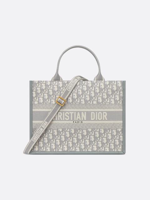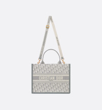 Maria Grazia Chiuri's hallmark Dior Book Tote is presented in an elegant new variation. The refined style showcases the iconic gray Dior Oblique embroidery and tonal calfskin. Designed to keep all the daily essentials organized, the interior is equipped with a zip pocket and slip pockets. Featuring an adjustable and removable shoulder strap, the practical medium tote exemplifies Dior's savoir-faire and can be carried by hand or worn over the shoulder. - Main composition: cotton and calfskin - Cotton, linen and calfskin lining - Adjustable and removable cotton shoulder strap - Interior zip pocket - Two interior slip pockets - Dust bag included - Made in Italy Size & Fit - Dimensions: 36.5 x 28 x 16.5 cm / 14.5 x 11 x 6.5 inches (Length x Height x Width) - Strap length: 75 – 134 cm / 29.5 – 53 inches - Drop length: 43.5 – 64.5 cm / 17 – 25.5 inches