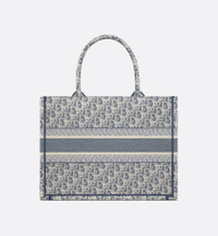 Introduced by Maria Grazia Chiuri, Creative Director of Christian Dior, the Dior Book Tote has become a staple of the Dior aesthetic. Designed to hold all the daily essentials, the blue lightweight cotton chambray style is fully embroidered with the iconic Dior Oblique motif in raffia and ultra-durable cotton thread. Adorned with the Christian Dior Paris signature on the front, the medium tote exemplifies the House's savoir-faire and may be carried by hand or worn over the shoulder. - Main composition: cotton - Christian Dior Paris signature on the front - Dust bag included - Made in Italy Size & Fit - Dimensions: 36 x 27.5 x 16.5 cm / 14 x 11 x 6.5 inches (Length x Height x Width) - The bag's large size can accommodate a 15-inch laptop, a pouch, a wallet, a phone, sunglasses and lipstick - Top handle length: 42 cm / 16.5 inches - Top handle drop length: 16 cm / 6.5 inches - Weight: 650 g / 23 ounces - Size and weight details may vary depending on the product's material