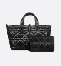 The Dior Toujours bag is distinguished by a casual and practical design. Demonstrating the House's savoir-faire, the style is constructed in black crinkled calfskin, enhanced by the quilted effect of the Macrocannage motif. It showcases a spacious interior compartment with a matching pouch to organize the essentials. Its thin leather strap closure keeps items secure while the D of the CD Lock closure twists to alter the sides and enhance the bag's silhouette. The leather top handles can be adjusted using the small notches to allow the medium bag to be carried by hand or worn over the shoulder. - Main composition: calfskin - Calfskin lining - Double closure: a thin lace-through strap and a Christian Dior Paris strap with a CD Lock clasp - D.I.O.R. charms - Removable interior pouch - Adjustable leather top handles - Dust bag included - Made in Italy Size & Fit - Dimensions: 28.5 x 21.5 x 17 cm / 11 x 8.5 x 6.5 inches (Length x Height x Width) - The size is suitable for two wallets, a phone, two card holders, sunglasses and lipstick - Top handle length: 29 – 54 cm / 11.5 – 21.5 inches - Top handle drop length: 10.5 – 23 cm / 4 – 9 inches - Weight: 850 g / 30 ounces - Size and weight details may vary depending on the product's material
