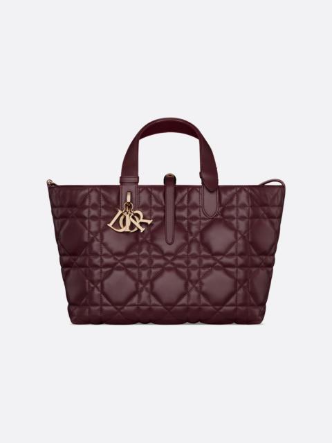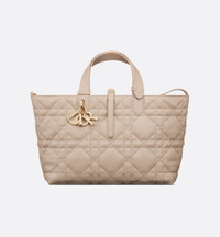 The Dior Toujours bag is distinguished by a casual and practical design. Crafted in warm taupe calfskin with Macrocannage topstitching, the style showcases a spacious interior compartment with a matching pouch to organize the essentials. Its thin leather strap closure keeps items secure while the D of the CD Lock clasp twists to adjust the sides and enhance the bag's silhouette. The leather top handles can be adjusted using the small notches so the medium bag can be carried by hand or worn over the shoulder. - Main composition: calfskin - Calfskin lining - Double closure: a thin lace-through strap and a Christian Dior Paris strap with a CD Lock clasp - Pale gold-finish metal D.I.O.R. charms - Removable interior pouch - Adjustable leather top handles - Dust bag included - Made in Italy Size & Fit - Dimensions: 28.5 x 21.5 x 17 cm / 11 x 8.5 x 6.5 inches (Length x Height x Width) - The size is suitable for two wallets, a phone, two card holders, sunglasses and lipstick - Top handle length: 29 – 54 cm / 11.5 – 21.5 inches - Top handle drop length: 10.5 – 23 cm / 4 – 9 inches - Weight: 850 g / 30 ounces - Size and weight details may vary depending on the product's material
