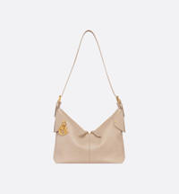 New for Cruise 2026, the Dior Voyage bag combines soft lines with sophisticated details for a harmonious silhouette. The powder beige grained calfskin leatherwork showcases Flat Macrocannage topstitching in an interpretation of the House's iconic motif. The supple construction is enhanced by antique gold-finish metal D.I.O.R. charms and finely crafted leather accents for added structure, while the main compartment has a secure and practical two-way zip closure. Featuring a top handle with adjustable buckles, the medium bag can be worn over the shoulder as a daily companion. - Main composition: calfskin - Cotton and linen lining - Two-way zip closure - D.I.O.R. charms - Adjustable leather top handle with antique gold-finish metal buckles - Interior zip pocket - Dust bag included - Made in Italy Size & Fit - Dimensions: 28 x 18 x 12 cm / 11 x 7 x 4.5 inches (Length x Height x Width) - The size is suitable for a tablet, a Voyageur slim wallet, a card holder, a phone, sunglasses and lipstick - Size and weight details may vary depending on the product's material