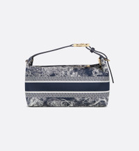 Maria Grazia Chiuri's DiorTravel Nomad pouch is a modern hybrid design. Crafted in blue technical fabric with the Toile de Jouy Reverse motif, it stands out with a spacious and soft form that will accommodate all the essentials. The medium style can be carried by hand or worn over the shoulder thanks to the top handle, complete with a military-inspired pale gold-finish metal CD buckle, while one of the House's embroidered shoulder straps can be attached to the side rings. - Christian Dior Paris signature on the front - Zip closure - Adjustable top handle with CD buckle - 2 metal rings to attach the embroidered shoulder straps and micro shoulder straps from the collection - Made in Italy Size & Fit - Dimensions: 22 x 13 x 9.5 cm / 8.5 x 5 x 3.5 inches (Length x Height x Width) - The size is suitable for a phone, a card holder, sunglasses and lipstick - Handle length: 20 - 29 cm / 8 - 11.5 inches