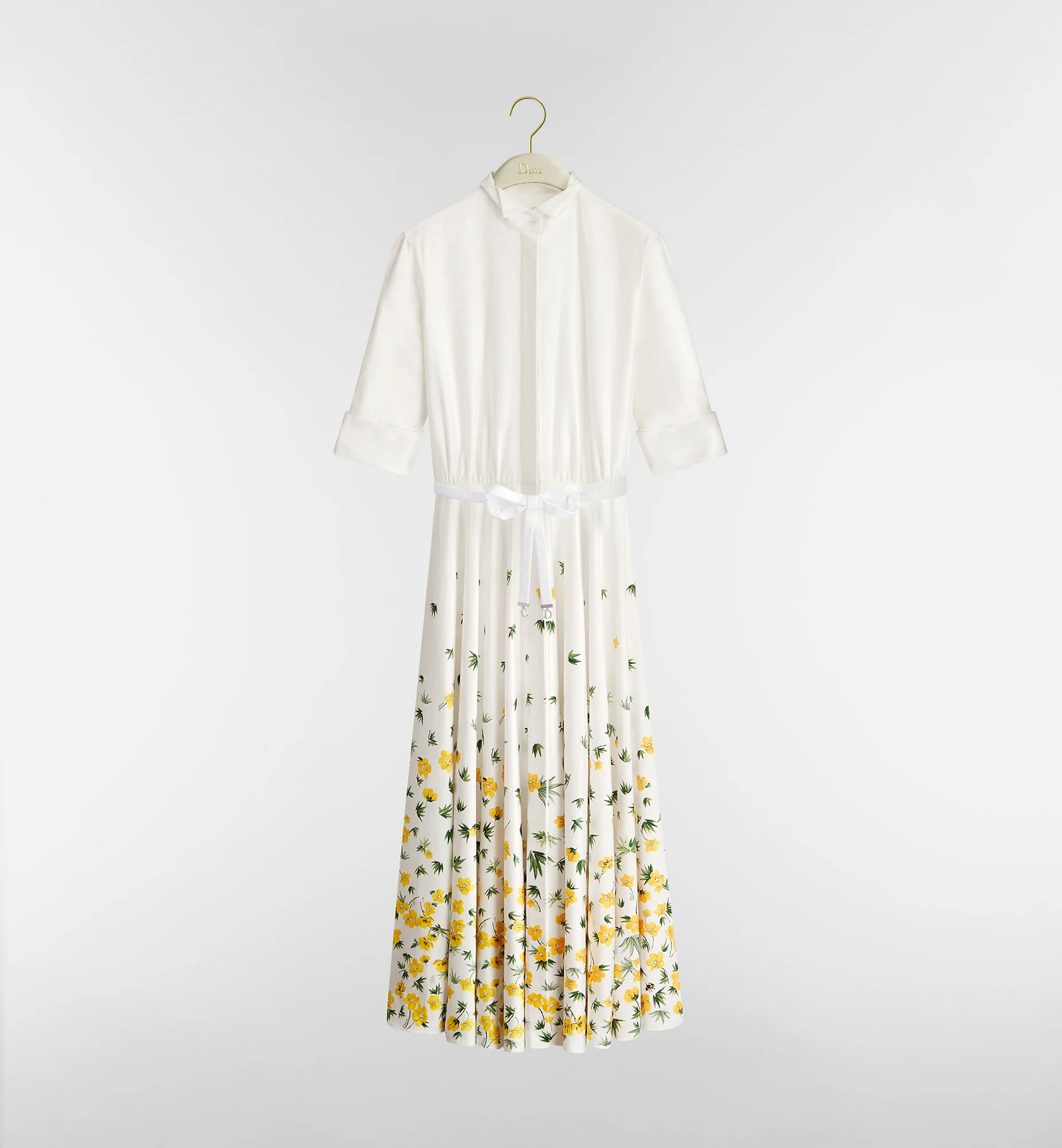 White Cotton Poplin With Yellow And Green Dior Buttercup Motif