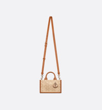 The Dior Book Tote is a House classic and original design by Maria Grazia Chiuri, Creative Director of Christian Dior. Constructed in beige raffia displaying the iconic Cannage motif, it is accented by pale gold-finish metal D.I.O.R. charms adorning one of the top handles. Exemplifying House savoir-faire, the miniature Dior Book Tote features an adjustable and removable strap that allows it to be carried by hand, worn over the shoulder or crossbody. - Main composition: technical fabric and calfskin - Christian Dior Paris signature on the front - Adjustable and removable shoulder strap - Made in Italy Size & Fit - Dimensions: 21.5 x 13 x 7.5 cm / 8.5 x 5 x 3 inches (Length x Height x Width) - The size is suitable for a phone, a card holder and lipstick - Strap length: 103 – 118 cm / 40.5 – 46.5 inches - Drop length: 49.5 – 57.5 cm / 19.5 – 22.5 inches - Top handle length: 22 cm / 8.5 inches - Top handle drop length: 7 cm / 3 inches - Weight: 330 g / 11.5 ounces - Size and weight details may vary depending on the product's material