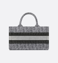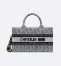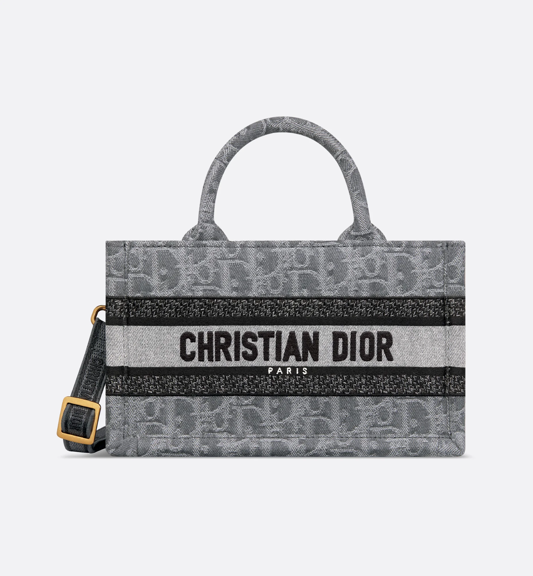The Dior Book Tote is a House classic and original design by Maria Grazia Chiuri, Creative Director of Christian Dior. The style is fully embroidered with gray denim-effect cotton thread, offering a new take on the iconic Dior Oblique motif, and enhanced by the Christian Dior Paris signature. Exemplifying Dior's savoir-faire, the miniature Dior Book Tote features an adjustable and removable strap that allows it to be carried by hand, worn over the shoulder or crossbody. - Main composition: cotton - Christian Dior Paris signature on the front - Adjustable and removable shoulder strap - Made in Italy Size & Fit - Dimensions: 21.5 x 13 x 7.5 cm / 8.5 x 5 x 3 inches (Length x Height x Width) - The size is suitable for a phone, a card holder and lipstick - Strap length: 67 – 123 cm / 26.5 – 48.5 inches - Drop length: 30 – 59 cm / 12 – 23 inches - Top handle length: 22 cm / 8.5 inches - Top handle drop length: 7 cm / 3 inches - Weight: 270 g / 9.5 ounces - Size and weight details may vary depending on the product's material