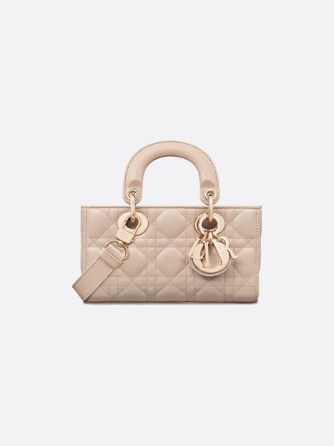 New for Winter 2025, the Lady D-Joy bag captures the House's vision of elegance and beauty by showcasing the iconic streamlined aesthetic of the Lady Dior line. Crafted in black lambskin with Cannage stitching, the refined and timeless style is enhanced and illuminated by pale gold-finish metal D.I.O.R. charms. Featuring one detachable chain strap and another adjustable and removable leather strap, the miniature Lady D-Joy bag can be carried by hand, worn over the shoulder or crossbody as a daily companion. - Main composition: lambskin - Lambskin and goatskin lining - Removable chain strap - Adjustable and removable leather shoulder strap - Interior slip pocket - Dust bag included - Made in Italy Size & Fit - Dimensions: 19 x 10.5 x 5.5 cm / 7.5 x 4 x 2 inches (Length x Height x Width) - The size is suitable for a phone, a card holder and lipstick - Strap length: 108.5 – 118.5 cm / 42.5 – 46.5 inches - Drop length: 51.5 – 56.5 cm / 20.5 – 22 inches - Chain length: 54.5 cm / 21.5 inches - Chain drop length: 24 cm / 9.5 inches - Weight: 660 g / 23.5 ounces - Size and weight details may vary depending on the product's material