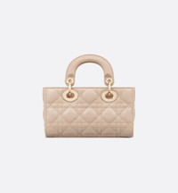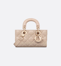 New for Winter 2025, the Lady D-Joy bag captures the House's vision of elegance and beauty by showcasing the iconic streamlined aesthetic of the Lady Dior line. Crafted in powder beige lambskin with Cannage stitching, the refined and timeless style is enhanced and illuminated by pale gold-finish metal D.I.O.R. charms. Featuring one detachable chain strap and another adjustable and removable leather strap, the miniature Lady D-Joy bag can be carried by hand, worn over the shoulder or crossbody as a daily companion. - Main composition: lambskin - Lambskin and goatskin lining - Removable chain strap - Adjustable and removable leather shoulder strap - Interior slip pocket - Dust bag included - Made in Italy Size & Fit - Dimensions: 19 x 10.5 x 5.5 cm / 7.5 x 4 x 2 inches (Length x Height x Width) - The size is suitable for a phone, a card holder and lipstick - Size and weight details may vary depending on the product's material