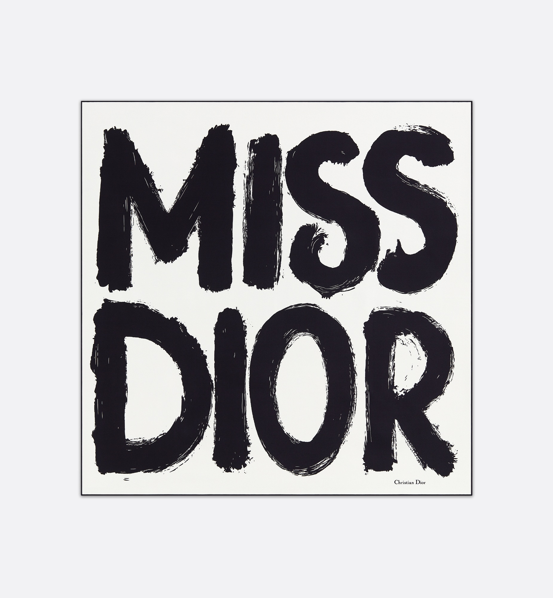 The square scarf features the black Miss Dior Graffiti print, a nod to the House's debut ready-to-wear collection in 1967 and a manifesto to Maria Grazia Chiuri's signature celebration of feminism. Made in white silk twill, the design has contrasting hand-rolled edges and can be worn around the neck or head to complete a Dior look. - White and black Miss Dior Graffiti print - Contrasting hand-rolled edges - 100% silk twill - Made in Italy Size & Fit - Dimensions: 90 x 90 cm / 35.5 x 35.5 inches