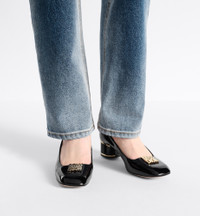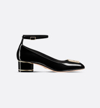 Unveiled at the Autumn-Winter 2024-2025 Fashion Show, the new Miss Dior pump is a creation with retro appeal. The black patent calfskin upper is adorned with the collection's hallmark Miss Dior signature in gold-finish letters on the front, inspired by the Marc Bohan for Dior archives in a modern take on the 1960s. Completed by an ankle strap and a 4-cm (1.5) cylindrical heel embellished with gold-finish metal lines, the shoe can be coordinated with any of the season's looks. - Main composition: calfskin - Goatskin lining - Gold-finish metal Miss Dior signature on the front - Adjustable buckled ankle strap - Calfskin sole with star, Christian Dior's lucky symbol - Made in Italy Size & Fit - Cylindrical heel: 4 cm / 1.5 inches - The style fits true to size, we recommend ordering your normal shoe size - Weight: 290 g / 10 ounces - Using our personalized tool will provide you with the best size recommendation - For more information, please review the size guide