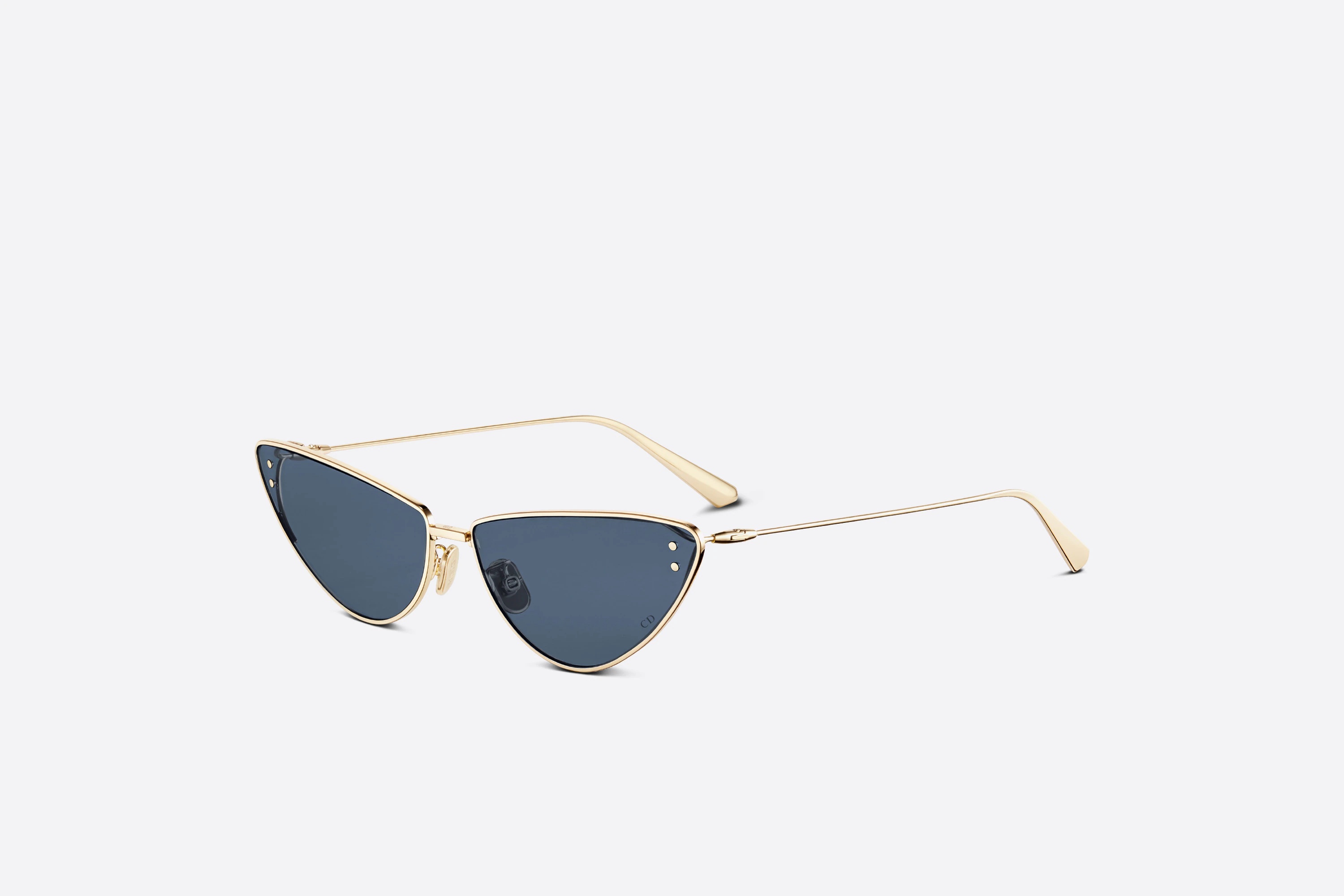 Presented during the Summer 2022 fashion show, the MissDior B1U sunglasses are the signature of the House's new line. The style stands out with a sophisticated 1950s-inspired butterfly shape, offering a new take on the hallmark branched construction. An ultra-thin graphic frame in gold-finish metal is enhanced by blue lenses. These statement sunglasses will complement any look with a balanced touch that's both retro and modern. - Gold-finish metal frame - Blue lenses - 100% UVA/UVB protection - Filter category: 3 - Can be adapted for prescription lenses - Made in Italy Size & Fit - The adjustable metal nose pads can adapt to all face shapes - Lenses: 63 mm / 2.5 inches, Bridge: 14 mm / 0.5 inch, Temples: 135 mm / 5.25 inches