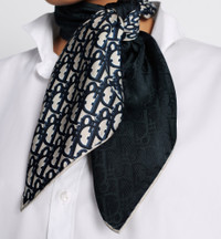 The Dior Oblique square scarf offers a new take on the hallmark Dior Oblique motif with a modern and timeless variation. Crafted in navy blue silk twill, the style features a diagonal tonal jacquard band with the Christian Dior signature separating the contrasting and tonal Dior Oblique prints. The square scarf with hand-rolled edges can be tied at the neck or head to complete the Dior look. - Navy blue Dior Oblique print - Diagonal tonal jacquard band with Christian Dior signature - Hand-rolled edges - 100% silk twill - Made in Italy Size & Fit - Dimensions: 67 x 67 cm / 26.5 x 26.5 inches