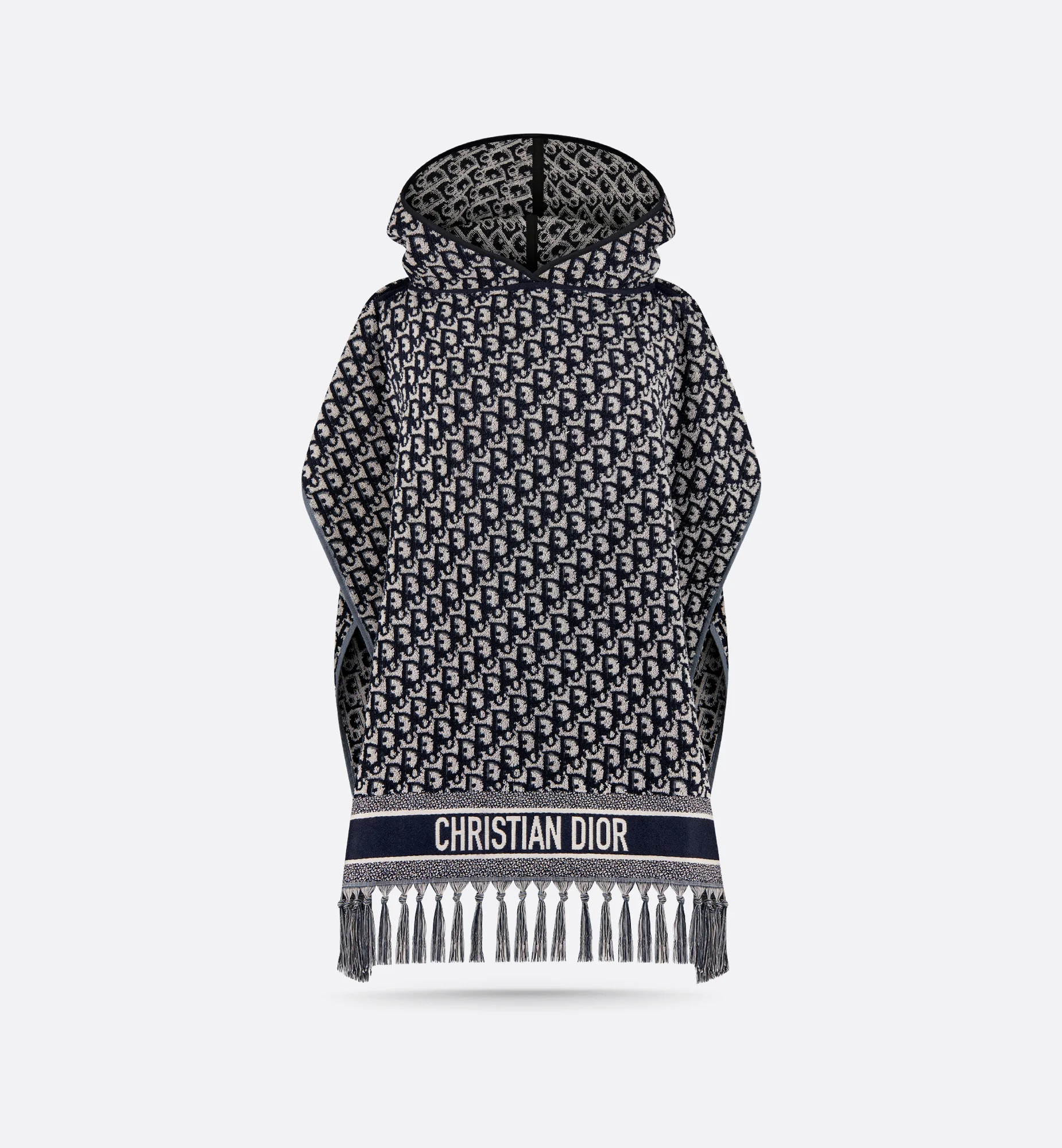 The hooded poncho highlights the navy blue Dior Oblique motif, the hallmark House pattern since 1969. Its terrycloth material, in soft and lightweight cotton, is embellished with tonal Christian Dior signature jacquard bands and hand-tied fringes. Original and modern, the poncho is worn over the shoulders and will lend an iconic touch to any summer outfit. - Navy blue Dior Oblique motif - Tonal jacquard bands with Christian Dior signature - Hand-tied fringe - Hood - Open sleeves and draped body - 100% cotton - Made in Italy Size & Fit - Dimensions: 70 x 145 cm / 27.5 x 57 inches