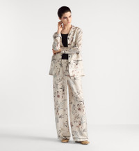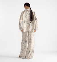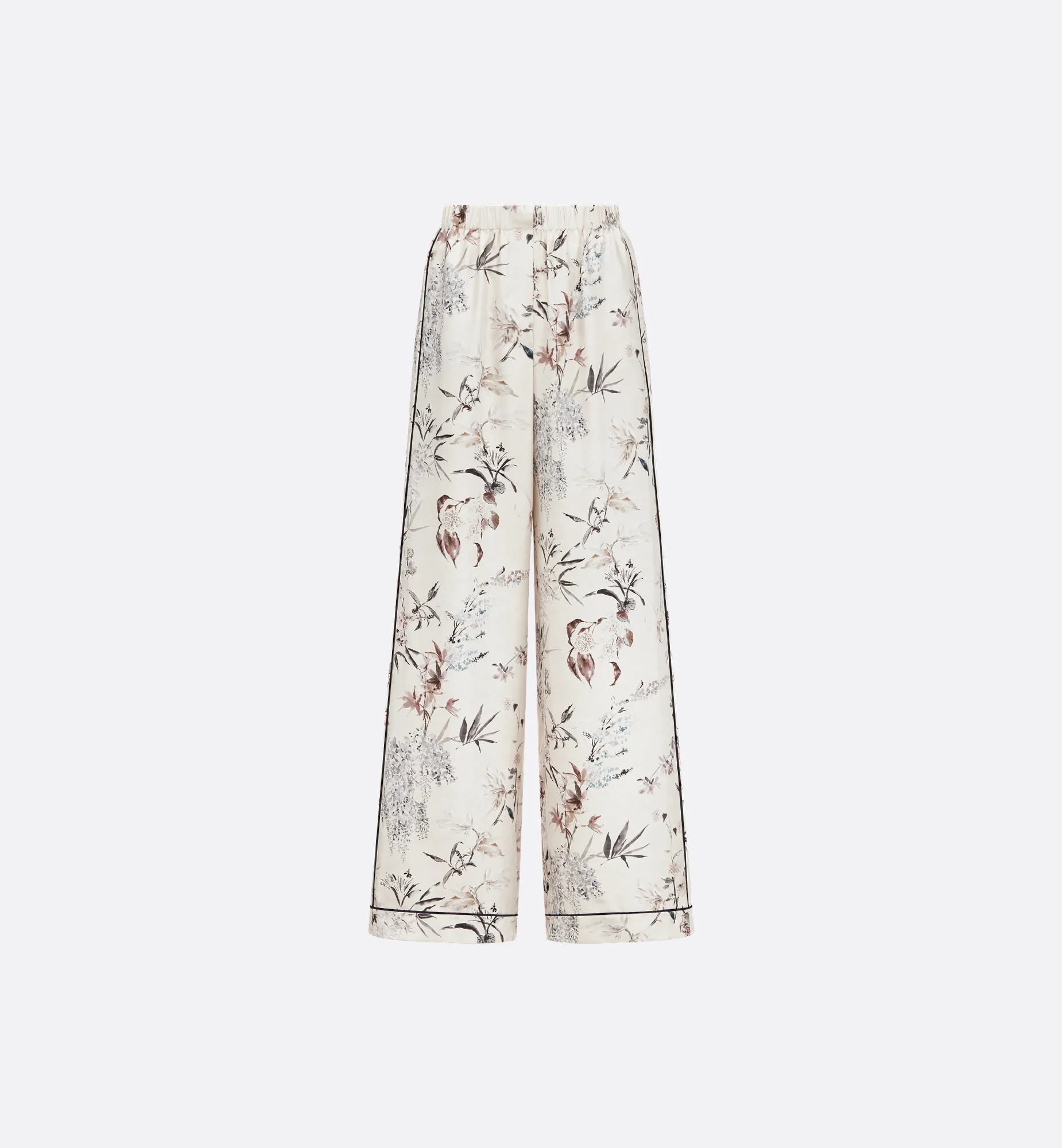 The pants showcase the multicolor Millefiori motif, featuring a refined composition of Asian flowers in soft and delicate shades. Crafted in white silk twill, they are enhanced by black piping and practical side pockets. Lightweight and elegant, the pants can be worn with other Millefiori creations. - Black piping - Elastic waistband - Concealed front button closure - Unlined - 100% silk - Made in Italy Size & Fit - Loose fit - High waist - We recommend ordering a size smaller than your regular size for a more comfortable fit - The model measures 180 cm / 71 inches and the item shown is in size 36 (FR) - Using our personalized tool will provide you with the best size recommendation - For more information, please review the size guide