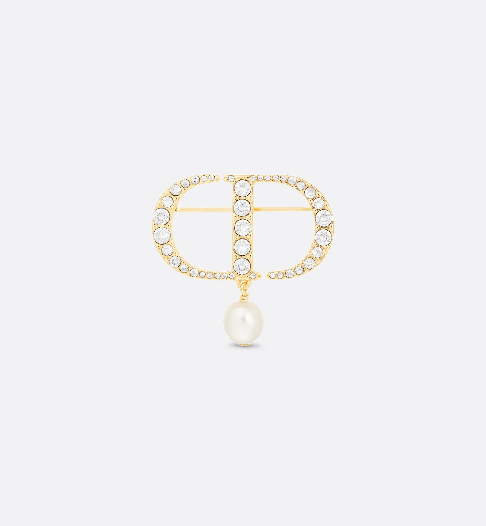 The Petit CD brooch showcases a modern and refined design. The 'CD' signature in gold-finish metal is in a pave of white crystals and adorned with a single white resin pearl. The brooch can be worn with other Petit CD creations. - White resin pearl - White crystals - 'CD' signature - Gold-finish metal - Pin fastening - Made in Germany Size & Fit - Width: 3.5 cm / 1.5 inches