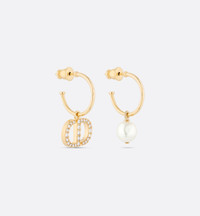 The Petit CD earrings deliver an elegant and streamlined design. The asymmetrical style features a 'CD' signature ring with a pave of white crystals on one side and a white resin pearl on the other. The modern and refined earrings can be styled with other creations from the Petit CD line. - White resin pearl - White crystals - 'CD' signature - Gold-finish metal - Push clasp - Sold as a pair - Made in Germany