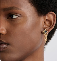 The Petit CD Lucky Baroque earrings have a modern design celebrating the House's codes of refinement. The star in deep ocean blue glass is adorned with the CD signature and delicately surrounded by crystals, while gold-finish metal chains are accented by silver-tone faceted crystals. The elegant earrings can be paired with other Petit CD Lucky Baroque creations. - Silver-tone crystals - CD signatures - Star details in deep ocean blue glass - Gold-finish metal - Push clasp - Sold as a pair - Made in Portugal Size & Fit - Earring height: 2.7 cm / 1 inch - CD star dimensions: 1.5 x 1.3 cm / 0.6 x 0.5 inch (Length x Height)