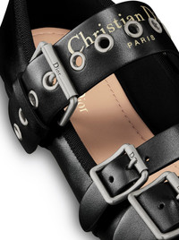 -Main fabric composition: calfskin -Lambskin lining -Gold Christian Dior Paris signature on the front -Adjustable straps with silver-finish metal buckles -Foldable heel counter -Rubber sole with star, Christian Dior`s lucky symbol Made in Italy Composition: Calf Leather 100% Calf Leather Color code: 900 NOIR KCB946SCG