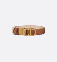 The Saddle belt has become a Dior icon and a wardrobe classic. It is offered in a reversible variation, thanks to its swivel feature. Crafted in golden saddle smooth calfskin on one side and caramel beige on the other, it is embellished with the antique gold-finish metal CD buckle. The design also features two removable loops that can be worn in a tonal or contrasting fashion. The timeless accessory elegantly highlights the waist and will coordinate well with jeans, a skirt or a dress. - Saddle CD buckle - Antique gold-finish metal detailing - Two removable loops - 80% calfskin, 20% brass - Made in Italy Size & Fit - Width: 20 mm / 0.8 inch - Buckle dimensions: 4.6 x 2.6 cm / 2 x 1 inches (Length x Height) - Using our personalized tool will provide you with the best size recommendation - For more information, please review the size guide