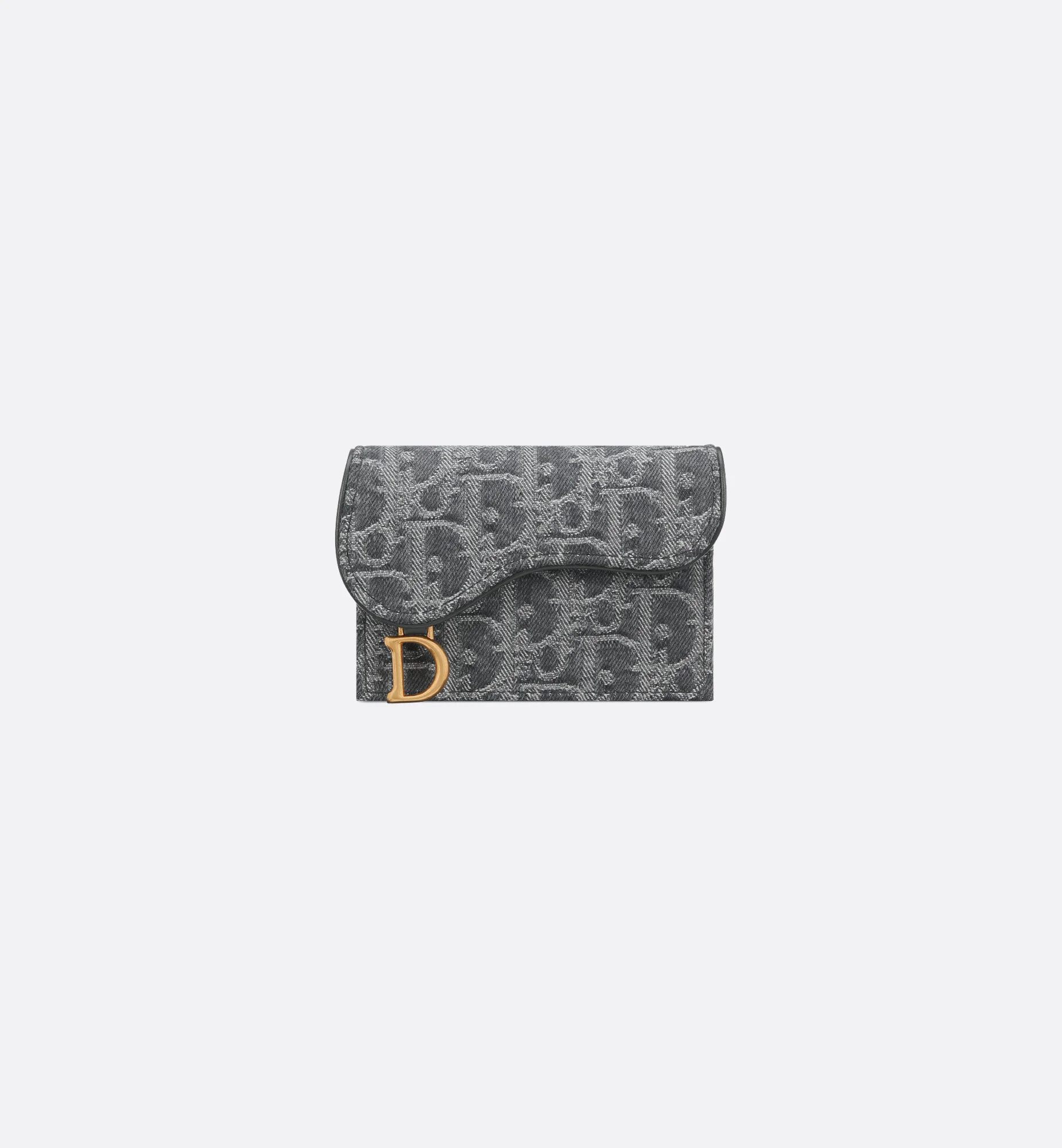 The Saddle Bloom card holder is a compact and practical alternative to the traditional wallet. Crafted in gray Denim Dior Oblique jacquard, offering a new take on the House's iconic motif, it can hold all the little daily essentials. The small and easy-to-carry companion will pair elegantly with the entire Saddle line. - Main composition: cotton and calfskin - Calfskin and technical fabric lining - Front D stirrup - One gusset compartment - Two card slots - Two slip pockets - Made in Italy Size & Fit - Dimensions: 11 x 7.5 x 3 cm / 4.5 x 3 x 1 inches (Length x Height x Width) - Size and weight details may vary depending on the product's material