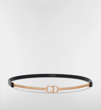 Gold Finish Metal / Black Smooth Calfskin And Silver Tone Crystals / Mm