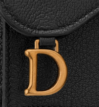 The Saddle flap card holder is a compact and practical alternative to the traditional wallet. Crafted in black goatskin, it can hold all the daily essentials. The small and easy-to-use companion may be paired with the entire Saddle line. - Front D stirrup - 1 gusseted compartment - 2 card slots - 2 patch pockets - Made in Italy Size & Fit - Dimensions: 10.5 x 7.5 x 2 cm / 4 x 3 x 1 inches (Length x Height x Width)