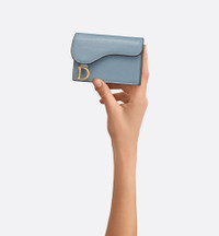 The Saddle Bloom card holder is a compact and practical alternative to the traditional wallet. The design is crafted in cloud blue goatskin and can hold all the small daily essentials. The small and easy-to-use companion may be paired with the entire Saddle line. - Front D stirrup - One gusseted compartment - Two card slots - Two slip pockets - Made in Italy Size & Fit - Dimensions: 10.5 x 7.5 x 2.5 cm / 4 x 3 x 1 inches (Length x Height x Width)