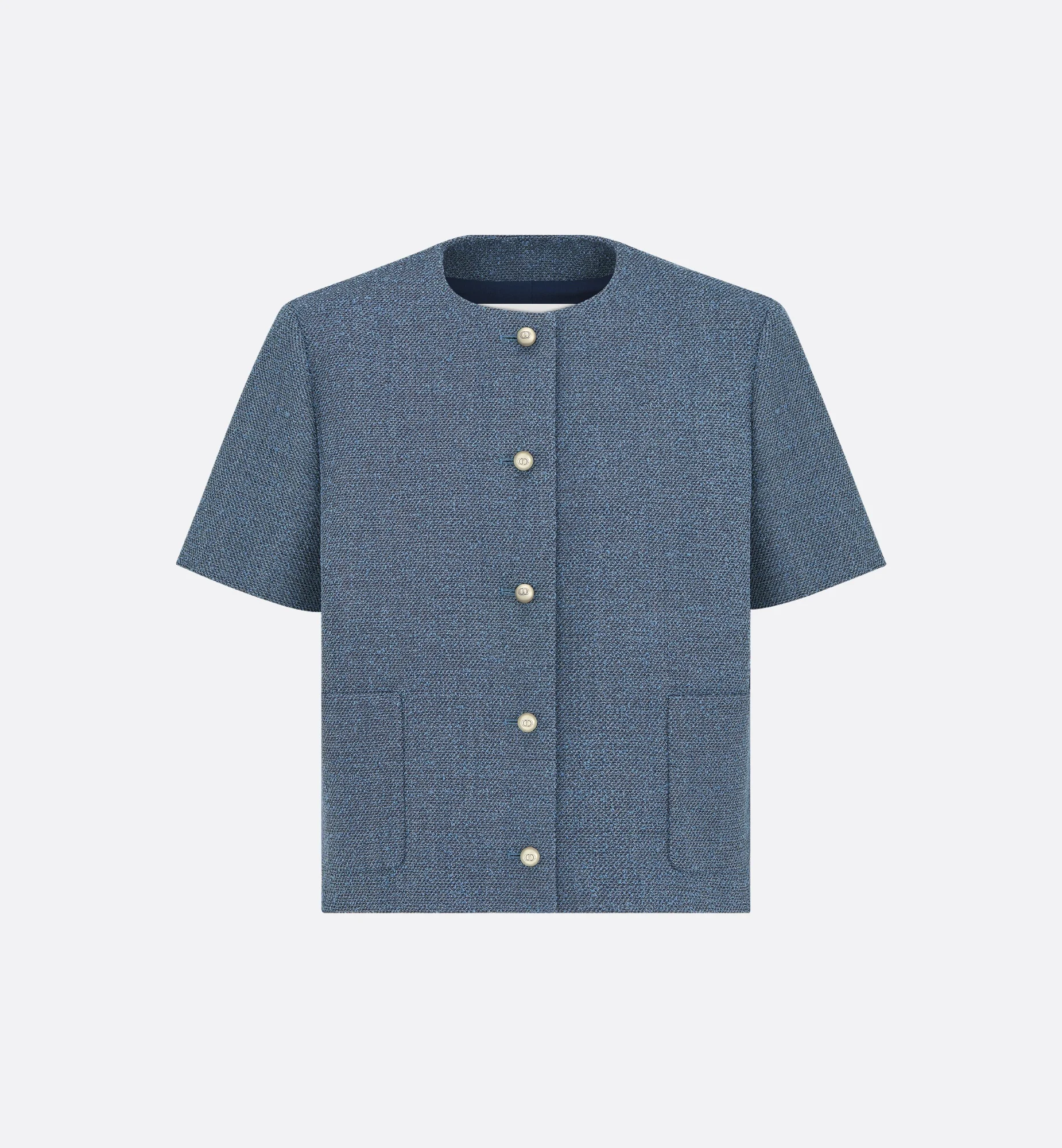 The short-sleeved jacket is revisited with the House's couture spirit. Crafted in blue virgin wool- and cotton-blend boucle, it features a regular-fit silhouette enhanced by a round neck, two side pockets and a button closure in the front. The elegant jacket can be worn with a mid-length skirt and blouse to complete a couture look. - Button closure with Christian Dior Paris engraved horn button - Tonal lining - 70% virgin wool, 23% cotton, 7% polyamide and lining: 100% silk - Made in France Size & Fit - Regular fit - Short sleeves - Using our personalized tool will provide you with the best size recommendation - For more information, please review the size guide