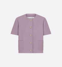 The short-sleeved jacket is revisited with the House's couture spirit. Crafted in purple virgin wool- and cotton-blend boucle, it features a regular-fit silhouette enhanced by a round neck, two side pockets and a button closure in the front. The elegant jacket can be worn with a mid-length skirt and blouse to complete a couture look. - CD signature Dior Tribales button closure - Tonal lining - 70% virgin wool, 23% cotton, 7% polyamide and lining: 100% silk - Made in France - Treat with extra care and gently dry clean - We recommend removing the accessories before cleaning Size & Fit - Regular fit - Short sleeves - Using our personalized tool will provide you with the best size recommendation - For more information, please review the size guide
