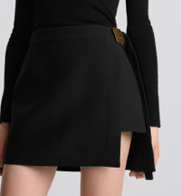 The skort redefines House staples of modern elegance. Crafted in black lightweight wool and silk, it is distinguished by a gold-finish Miss Dior buckle closure and a slit pocket on the side. The skort can be paired with a blouse from the season for a contemporary look. - Side zip and hook closure and gold-finish Miss Dior buckle - Tonal lining - 77% wool, 23% silk and lining: 100% silk - Made in Italy Size & Fit - Slightly flared cut - Short silhouette - The model measures 178 cm / 70 inches and the item shown is in size 36 (FR) - Using our personalized tool will provide you with the best size recommendation - For more information, please review the size guide