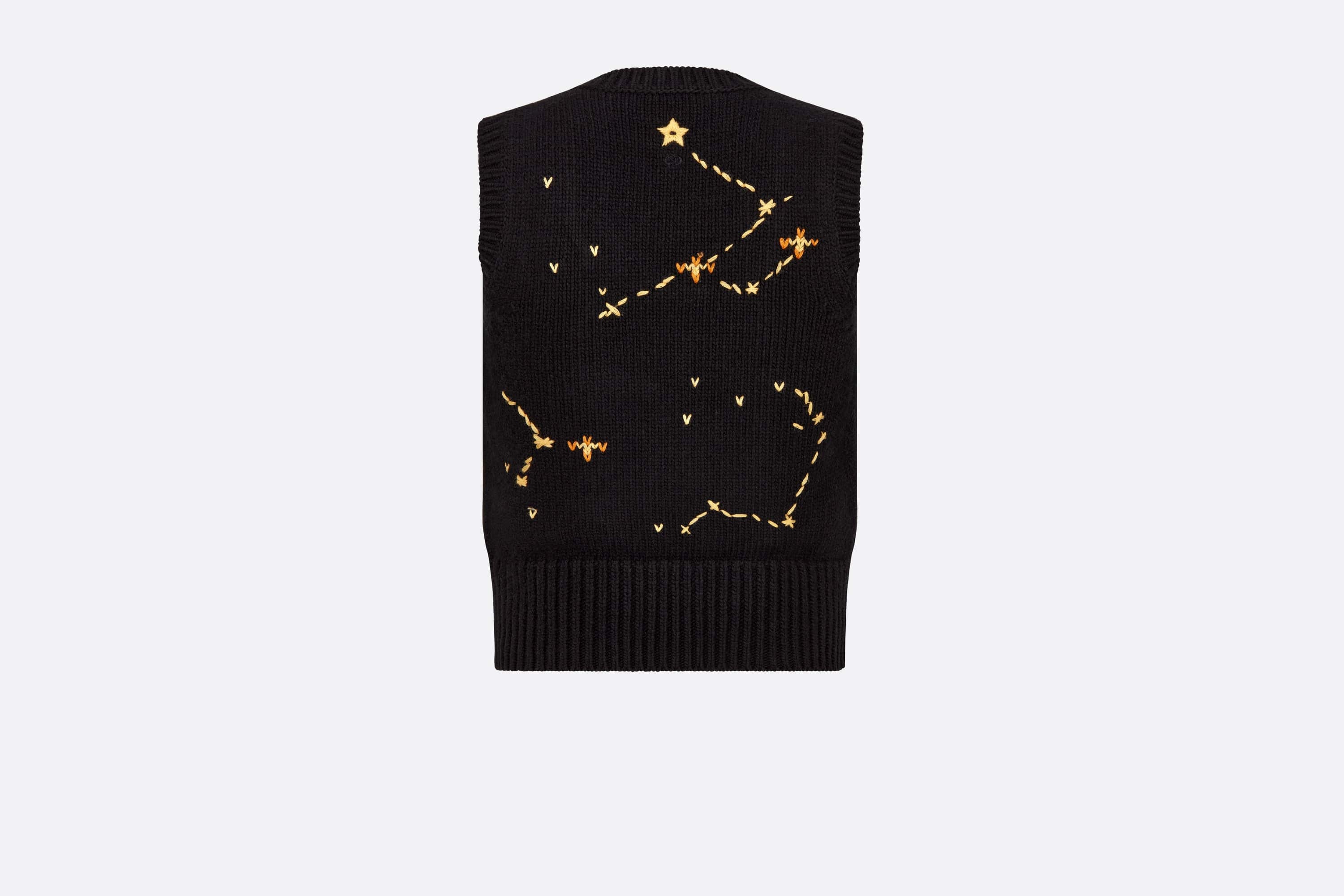 The sleeveless sweater showcases the Dior Pixel Zodiac motif, a new take on astrological signs through a whimsical and colorful universe. Crafted in black wool and cashmere, it features a ribbed round neck and hem. The sweater can be paired with other Dior Pixel Zodiac creations to complete the look. *This garment is crafted in a heavy-gauge knit - Hallmark embroidered bee - Ribbed collar and hem - 70% wool, 30% cashmere (3-gauge)* - Made in Italy Size & Fit - Straight cut - Back length: 46 cm / 18 inches (size 36) - Sleeveless - For more information, please review the size guide