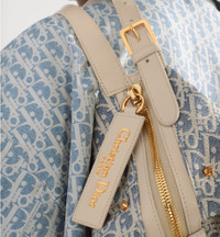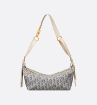 The D-Journey bag offers a new take on the hobo silhouette with a modern supple design. The style elegantly combines light biscuit smooth calfskin with blue chambray — a lightweight cotton denim embroidered with ultra-durable raffia thread forming the iconic Dior Oblique motif. The main compartment is completed by a zip pocket, while two decorative side pockets showcase a large leather pull with the Christian Dior Paris signature. Featuring adjustable leather top handles and a leather strap, the small D-Journey bag can be carried by hand, worn over the shoulder or crossbody as a daily companion. - Main composition: calfskin, technical fabric and cotton - Cotton, linen and calfskin lining - Zip closure - Adjustable leather strap and top handles with antique gold-finish metal CD hook - Decorative side pockets with leather pulls featuring antique gold-finish metal Christian Dior Paris signature - Interior zip pocket - Dust bag included - Made in Italy Size & Fit - Dimensions: 25.5 x 14.5 x 14 cm / 10 x 5.75 x 5.5 inches (Length x Height x Width) - The size is suitable for a phone, a wallet, sunglasses and lipstick - Strap length: 56 – 71 cm / 22 – 28 inches - Drop length: 26 – 33 cm / 10 – 13 inches - Top handle length: 27 – 42 cm / 10.5 – 16.5 inches - Top handle drop length: 11 – 18 cm / 4.5 – 7 inches - Weight: 550 g / 19.5 ounces - Size and weight details may vary depending on the product's material