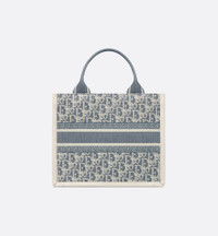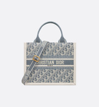 Maria Grazia Chiuri's hallmark Dior Book Tote is offered in an elegant variation. The refined style combines latte calfskin and Dior Oblique Chambray embroidery, a lightweight blue cotton denim embroidered with raffia and cotton thread forming the iconic Dior Oblique motif. Designed to keep all the daily essentials organized, the interior is equipped with a zip pocket and slip pockets. Featuring an adjustable and removable embroidered strap, the practical small tote exemplifies Dior's savoir-faire and can be carried by hand or worn over the shoulder. - Main composition: cotton and calfskin - Christian Dior Paris signature on the front - Embroidered adjustable and removable shoulder strap - Interior zip pocket - Two interior slip pockets - Dust bag included - Made in Italy Size & Fit - Dimensions: 26.5 x 22 x 14 cm / 10.5 x 8.5 x 5.5 inches (Length x Height x Width) - The size is suitable for a phone, a wallet, a card holder and sunglasses - Strap length: 72 – 132 cm / 28.5 – 52 inches - Drop length: 34 – 64 cm / 13.5 – 25 inches - Top handle length: 31 cm / 12 inches - Top handle drop length: 11 cm / 4.5 inches - Weight: 735 g / 26 ounces - Size and weight details may vary depending on the product's material