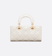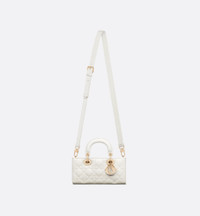 The Lady D-Joy bag captures the House's vision of elegance and beauty by showcasing the iconic streamlined aesthetic of the Lady Dior line. Crafted in latte patent calfskin with Cannage stitching, the legendary quilted texture is immediately recognizable. Pale gold-finish metal D.I.O.R. charms embellish and illuminate its silhouette. Featuring one removable chain strap and another adjustable and removable leather strap, the small Lady D-Joy bag can be carried by hand, worn over the shoulder or crossbody as a daily companion. - Main composition: calfskin - Goatskin and calfskin lining - Removable chain strap - Adjustable and removable leather shoulder strap - Interior slip pocket - Dust bag included - Made in Italy Size & Fit - Dimensions: 22 x 11.5 x 6 cm / 8.5 x 4.5 x 2.5 inches (Length x Height x Width) - The size is suitable for a phone, a card holder and lipstick - Strap length: 110 – 120 cm / 43.5 – 47 inches - Drop length: 56 – 58 cm / 22 – 23 inches