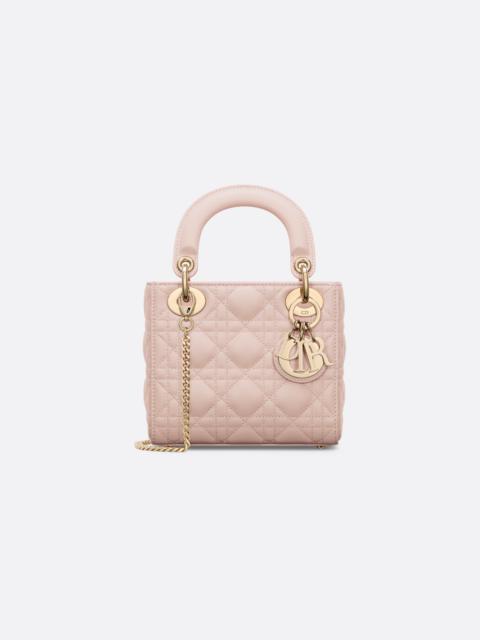The Lady Dior bag epitomizes the House's vision of elegance and beauty. Refined and sleek, the timeless creation is crafted in latte lambskin and covered with Cannage stitching, creating an instantly recognizable quilted texture. The pale gold-finish metal D.I.O.R. charms embellish and illuminate its silhouette. Featuring a removable chain shoulder strap, the miniature Lady Dior bag can be carried by hand or worn crossbody as an ideal evening wear companion. - Main composition: lambskin - Goatskin and lambskin lining - Detachable chain - Interior zip pocket - The bag may be paired with the House's different embroidered straps - Dust bag included - Made in Italy Size & Fit - Dimensions: 17 x 15 x 7 cm / 6.5 x 6 x 3 inches (Length x Height x Width) - The size is suitable for a phone, a card holder and lipstick - Chain length: 119 cm / 47 inches - Chain drop length: 58 cm / 23 inches - Weight: 690 g / 24.5 ounces