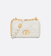 New for Fall 2025, the Soft Dior Caro bag showcases a supple construction combining modernity and timeless elegance. The luxurious latte lambskin style is embellished with Macrocannage topstitching, while the flap is adorned with an antique gold-finish metal CD twist clasp, inspired by the seal of a Christian Dior perfume bottle. The detachable chain strap with CD links allows the small bag to be carried by hand, worn over the shoulder or crossbody, and may be replaced by one of the House's wide embroidered straps for day or evening attire. - Main composition: lambskin - Lambskin lining - Flap closure with CD twist clasp - Adjustable, detachable CD chain link strap with Christian Dior Paris military-inspired buckle - Two removable links with an X-shaped center notch allow the chain to be opened - Interior zip pocket and slip pocket - Rear slip pocket - The bag may be paired with the House's different embroidered straps - Dust bag included - Made in Italy Size & Fit - Dimensions: 20 x 13 x 7 cm / 8 x 5 x 3 inches (Length x Height x Width) - The size is suitable for a phone, a card holder and lipstick - Size and weight details may vary depending on the product's material