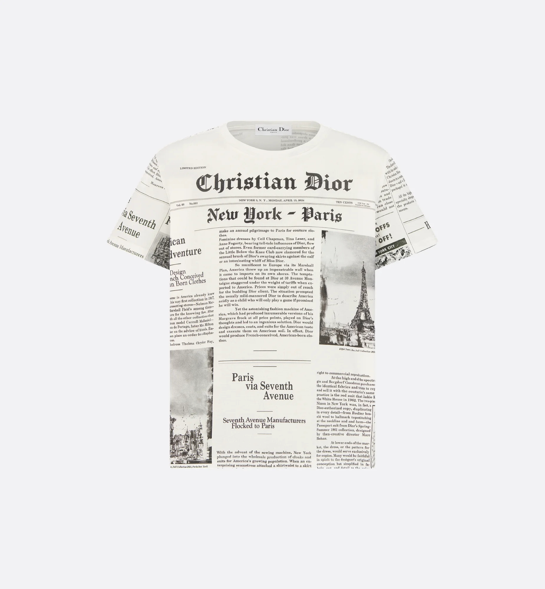 The T-shirt showcases a white and black Newspaper motif, drawn from House archives. Made in cotton jersey, it features a regular-fit silhouette with a crew neck and is enhanced by the Christian Dior signature. The T-shirt will pair with other Newspaper creations to complete the look. - Christian Dior signature - Unlined - 100% cotton - Made in Italy - Treat with extra care and gently dry clean Size & Fit - Regular fit - Short sleeves - Using our personalized tool will provide you with the best size recommendation - For more information, please review the size guide