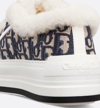 The Walk'n'Dior platform sneaker enhances the line with a modern creation. The deep blue Dior Oblique embroidered cotton upper is enhanced by white shearling lining. The style features a comfortable and lightweight thick sole, tongue and Christian Dior Paris laces. The sneaker will add a contemporary touch to any laid-back look. - Signatures on tongue, sole and laces - White shearling lining - EVA platform with star, Christian Dior's lucky symbol - Made in Italy - Additional set of laces provided Size & Fit - Platform: 3.5 cm / 1.5 inches - The style fits true to size, we recommend ordering your normal shoe size - For those with wider feet, we recommend ordering a half-size larger than your normal size - Weight: approximately 385 g / 13.5 ounces - For more information, please review the size guide