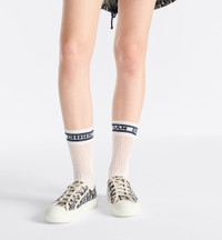 The Walk'n'Dior sneaker is distinguished by a deep blue embroidered cotton Dior Oblique motif. Its relaxed design features signatures on the tongue, rubber sole and laces for a timeless look. - Signatures on tongue, sole and laces - Rubber sole with star, Christian Dior's lucky symbol - Made in Italy - Additional set of laces provided Size & Fit - The shoe runs large, please order a half size smaller - For those with wider feet, we recommend ordering your normal size - For more information, please review the size guide