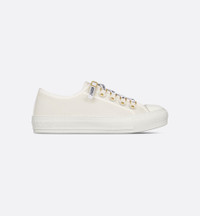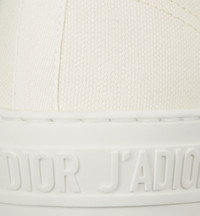The Walk'n'Dior sneaker is crafted in white cotton canvas and is a timeless design with a relaxed appeal. Embellished with tonal calfskin inserts and antique gold-finish metal detailing, the shoe is completed with Christian Dior J'Adior signatures on the rubber sole and laces. The style will lend a contemporary touch to any look. - Christian Dior J'Adior signatures on sole and laces - Leather inserts and antique gold-finish metal accessories - Rubber sole with star, Christian Dior's lucky symbol - Made in Italy - Non-removable laces Size & Fit - The style fits large, we recommend ordering a half size smaller - For those with wider feet, we recommend ordering your normal size - For more information, please review the size guide