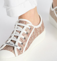 The Walk'n'Dior sneaker presents a nude embroidered cotton Dior Oblique motif. Its relaxed design features signatures on the tongue, rubber sole and laces for a timeless look. - Signatures on tongue, sole and laces - Rubber sole with star, Christian Dior's lucky symbol - Made in Italy - Additional set of laces provided Size & Fit - The shoe runs large, please order a half size smaller - For those with wider feet, we recommend ordering your normal size - For more information, please review the size guide