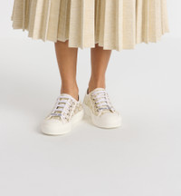 The Walk'n'Dior sneaker presents a modern silhouette in white cotton canvas showcasing the gold-tone Dior Oblique motif. Its relaxed design is completed by signatures on the tongue, rubber sole and laces for a timeless look. The comfortable sneaker will lend a modern touch to any attire. - Main composition: cotton, technical fabric and metallic thread - Lambskin lining - Signatures on tongue, sole and laces - Rubber sole with star, Christian Dior's lucky symbol - Made in Italy - Additional set of laces provided Size & Fit - The style fits large, we recommend ordering a half size smaller than your normal size - Using our personalized tool will provide you with the best size recommendation - For more information, please review the size guide