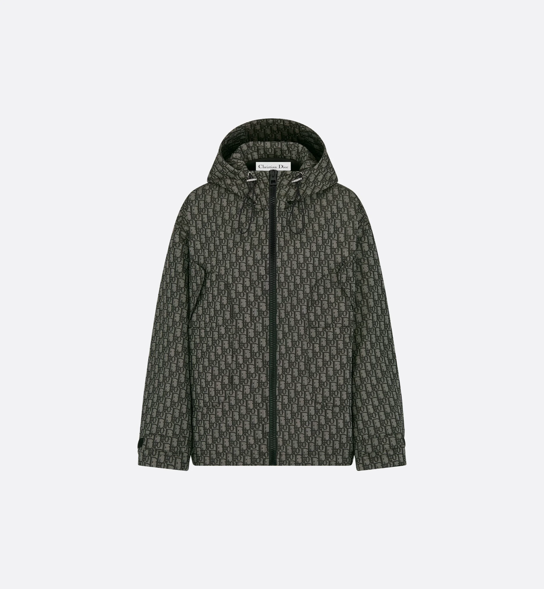 The waterproof hooded jacket showcases the iconic Dior Oblique motif. Crafted in gray technical jacquard taffeta, it features a zip closure, two large pockets on the front as well as drawstrings at the hem for optimal adjustment. Completed by an embroidered bee, the laid-back waterproof jacket can be paired with the matching skort to complete the look. - Embroidered hallmark bee and CD signature - Drawstrings - Lining - 100% polyester and lining: 100% polyester - Made in Italy Size & Fit - Loose fit - Long sleeves - Using our personalized tool will provide you with the best size recommendation - For more information, please review the size guide