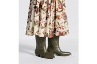 The Mexican-inspired Dior Wind heeled boot celebrates exceptional House savoir-faire. The khaki rubber upper is enhanced by a textured butterfly motif, lending a realistic topstitching effect, as well as a yellow Christian Dior Paris signature on the side. The 4.5 cm (2) Cuban heel and tonal Dior Oblique lining complete the shoe which will add a contemporary touch to all seasonal looks. - Yellow Christian Dior Paris signature on the side - Dior Oblique lining - Rubber sole with star, Christian Dior's lucky symbol - Made in Italy Size & Fit - Cuban heel: 4.5 cm / 2 inches - The upper is 31 cm / 12 inches high - The style fits true to size, we recommend ordering your normal shoe size - For those with wider feet, we recommend ordering a half-size larger than your normal size - Weight: approximately 859 g / 30.5 ounces - For more information, please review the size guide