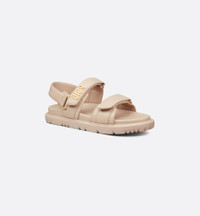 The powder beige lambskin Dioract sandal has a modern silhouette. The style features an anatomically shaped sole made with an ultra lightweight and comfortable leather. Scratch straps further enhanced by a gold-finish metal Dior signature on the upper strap complete the design. The sandal will lend a contemporary touch to any look. - Gold-finish metal Dior signature - Two adjustable scratch straps - Anatomically shaped leather insole - Notched EVA sole with star, Christian Dior's lucky symbol - Made in Italy Size & Fit - The style fits true to size: we recommend ordering your normal shoe size - For those with wider feet, we recommend ordering a half-size larger than your normal size - For more information, please review the size guide