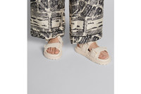 The Dioract sandal presents a modern silhouette in ecru cotton canvas with fringed edges. The style features an anatomically shaped sole made with ultra-lightweight and comfortable leather. Self-fastening straps further enhanced by a gold-finish metal Dior signature on the upper strap complete the design. The sandal will lend a contemporary touch to any look. - Gold-finish metal Dior signature - Two adjustable self-fastening straps - Anatomically shaped leather insole - Notched EVA sole with star, Christian Dior's lucky symbol - Made in Italy Size & Fit - The style fits true to size, we recommend ordering your normal shoe size - For those with wider feet, we recommend ordering a half-size larger than your normal size - For more information, please review the size guide