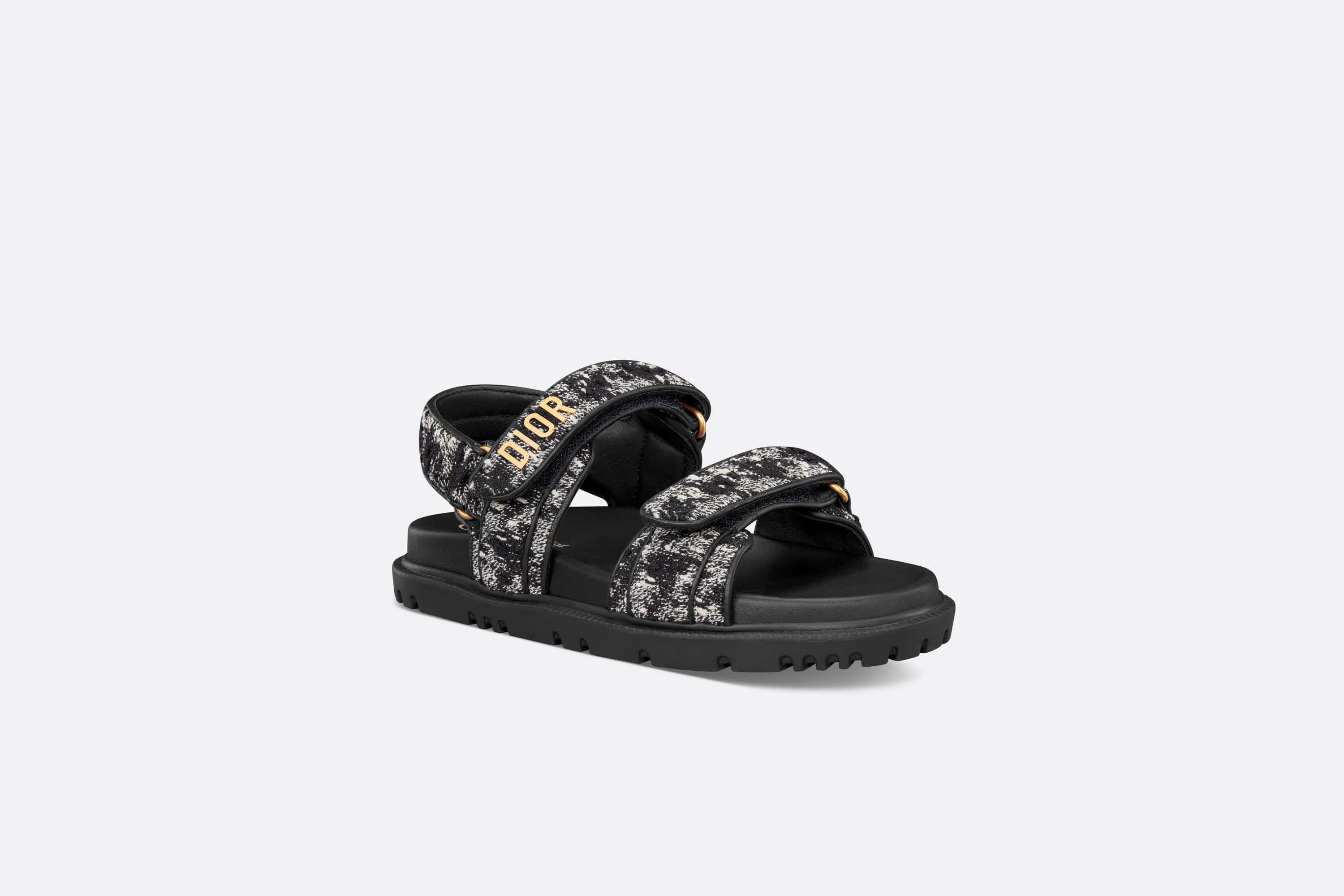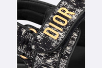 The Dioract sandal offers a modern silhouette in tweed showcasing the black and white houndstooth motif. The style features an anatomically shaped sole made with an ultra-lightweight and comfortable leather. Self-fastening straps further enhanced by a gold-finish metal Dior signature on the upper band complete the design. The sandal will lend a contemporary touch to any look and will coordinate with other houndstooth creations. - Gold-finish metal Dior signature - Two adjustable self-fastening straps - Anatomically shaped leather insole - Notched EVA sole with star, Christian Dior's lucky symbol - Made in Italy Size & Fit - The style fits true to size, we recommend ordering your normal shoe size - For those with wider feet, we recommend ordering a half-size larger than your normal size - Weight: approximately 304 g / 10.5 ounces - For more information, please review the size guide