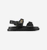 The Dioract sandal presents a modern silhouette in black calfskin quilted with the Cannage motif. The style features an anatomically shaped sole made with ultra-lightweight and comfortable leather. Self-fastening straps further enhanced by a gold-finish metal Dior signature on the upper strap complete the design. The sandal will lend a contemporary touch to any look. - Gold-finish metal Dior signature - Two adjustable self-fastening straps - Anatomically shaped leather insole - Notched EVA sole with star, Christian Dior's lucky symbol - Made in Italy Size & Fit - The style fits true to size, we recommend ordering your normal shoe size - For those with wider feet, we recommend ordering a half-size larger than your normal size - Weight: approximately 307 g / 11 ounces - For more information, please review the size guide